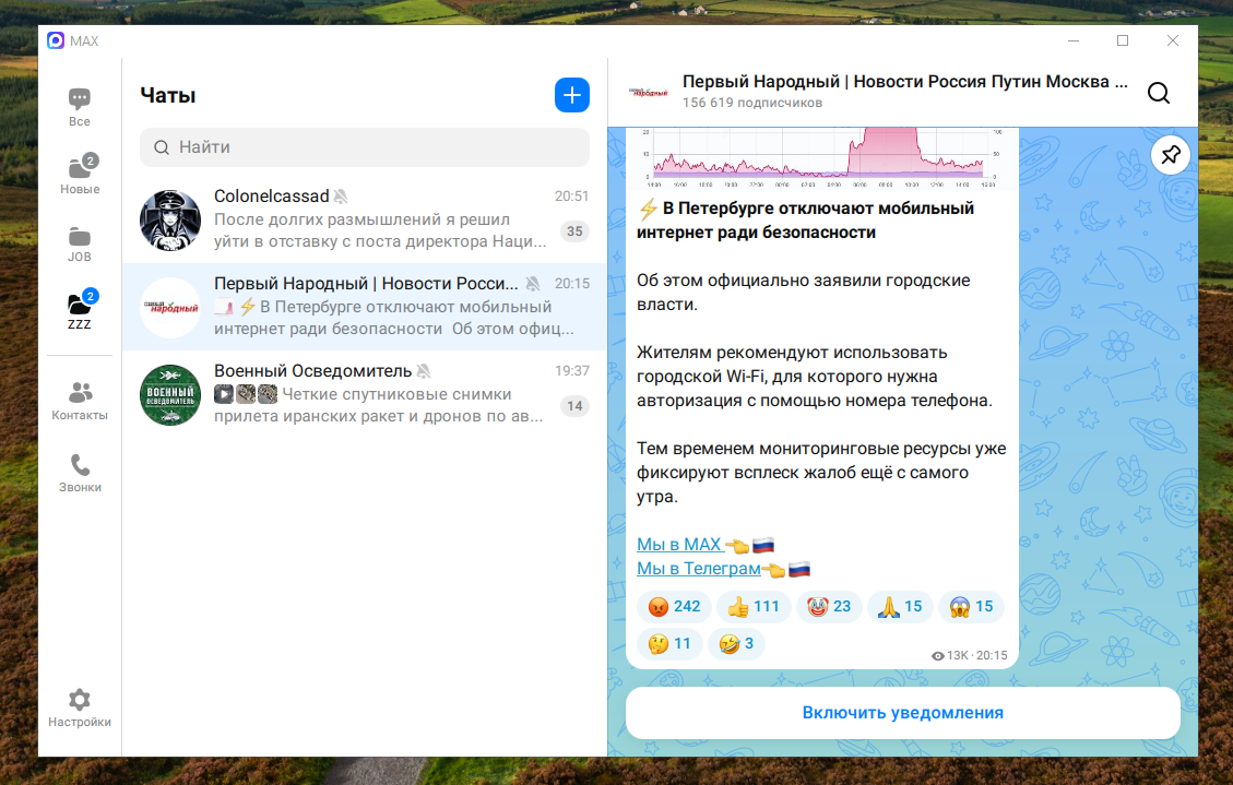 Быстрое и лёгкое приложение для общения и решения повседневных задач. Общайтесь в удовольствие благодаря высокому качеству связи и быстрому соединению даже в сетях со слабым сигналом. Анимированные стикеры, реакции в чатах, возможность отправки файлов до 4 ГБ – все необходимое для того, чтобы делиться настроением и важной информацией. В MAX можно войти сразу с нескольких устройств, используя свой основной номер мобильного телефона. Чаты и звонки будут синхронизироваться между устройствами. Доступна Веб-версия.